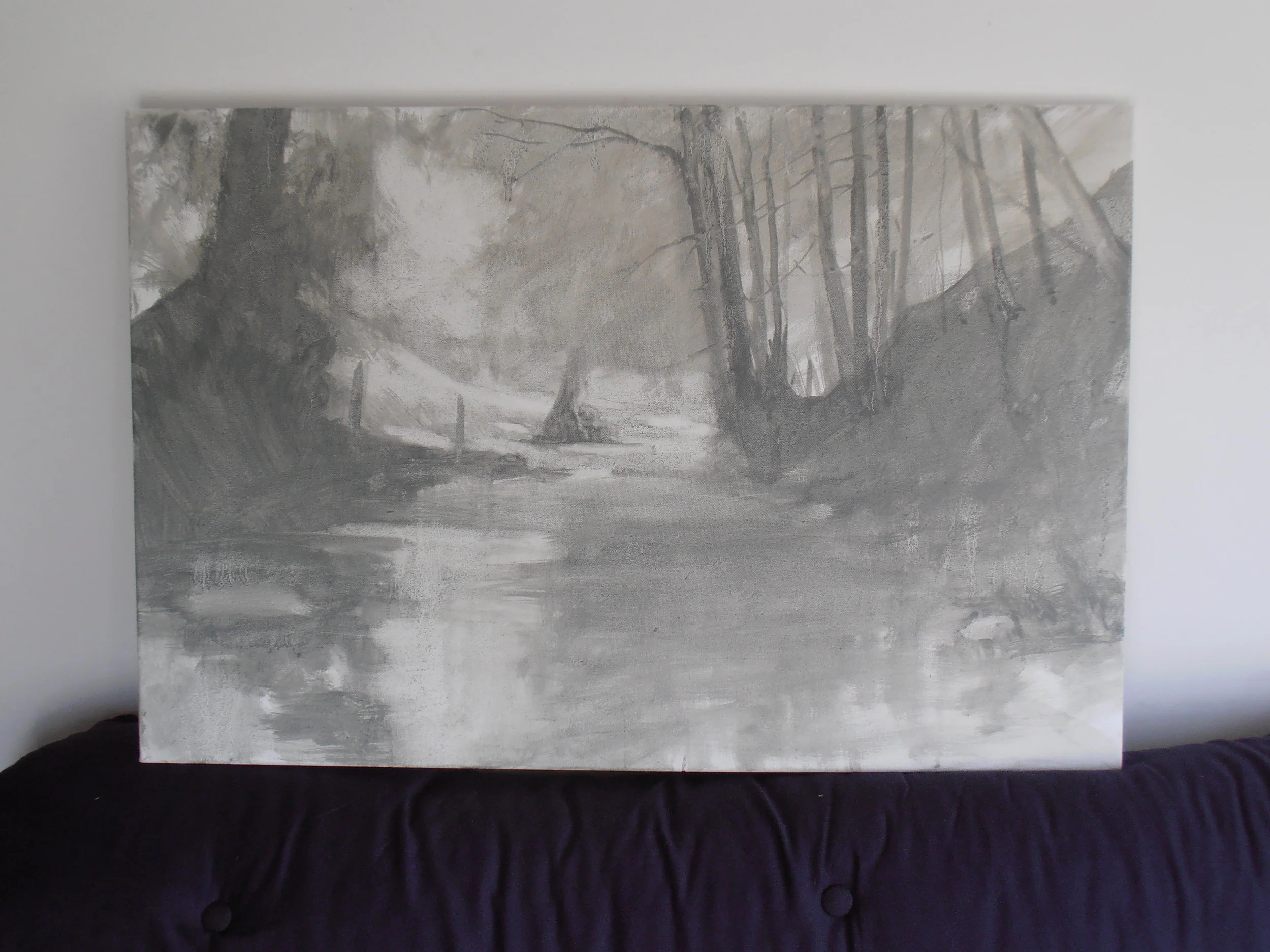 I have posted some photos of recent work here partly in the hope of some feedback. As far as I am concerned these paintings are in the very early stages, the lay in , the sketch, getting the feel of a new composition. My partner thinks otherwise and has told me not to do any more to them.She likes the immediacy and fresh feel. I really don't know what to think although perhaps a style could develop instead of the usual realistic conclusion that I usually strive for.